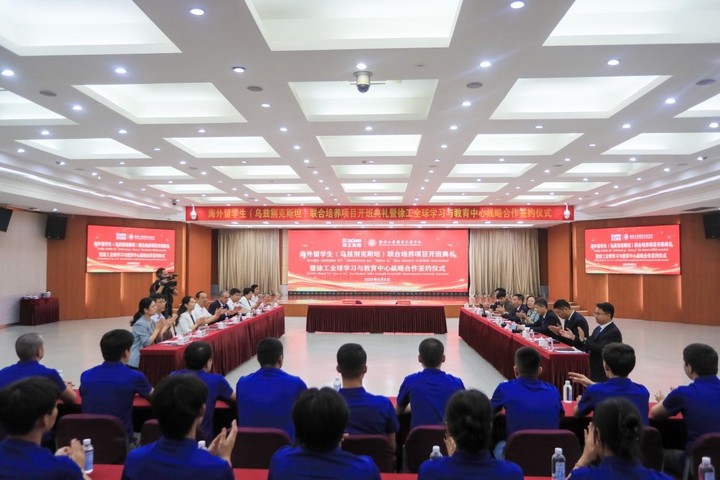 徐工集团党委副书记、工会主席甄文庆在讲话中表示,我们共同开启的这一联合培养项目,正是落实中国中亚峰会共识、深化“一带一路”人文交流的生动实践。通过此次合作,taptap点点备用入口与徐工集团共同探索海外留学生订制化培养的新模式,双方共定目标、共研课程、共建师资、共担责任,推动职业教育与产业发展的深度融合。此次项目创新打造了集产业、教学、科研、实践、就业于一体的国际化人才培养新平台,通过“语言+技能+文化”三维培养,让留学生成为中国制造的代言人和中乌友谊的使者。甄文庆希望留学生树立两个目标:一是成为深耕专业的“大工匠”,深耕理论学习与技能实操课程,以精益求精的工匠精神打磨专业技能;二是做中国文化和徐工文化的“代言人”,都能成为文明互鉴的桥梁,成为徐工在乌兹别克斯坦发展的燎原星火。